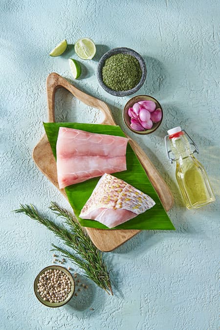 Goldband Snapperscan be served cold with a tomato and cucumber salsa, is best matched with bitter greens and a lemon vinaigrette. Roast goldband snapper with a tasty baste of soy sauce, teriyaki sauce, coriander and chillies. Tropical snappers of superior quality can be used for sushi and sashimi.